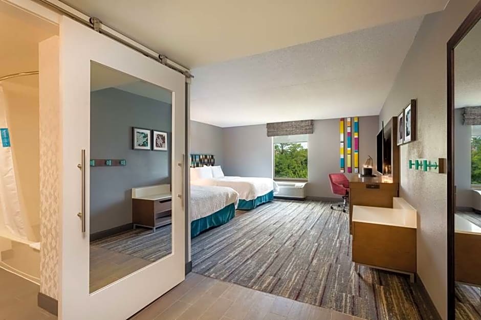 Any corresponding photo may not reflect the specific accessible room type or room feature. This mobility and hearing accessible, nonsmoking room features two queen sized beds , and an accessible bath tub. The room also has a visual alarm and notification devices for the doorbell or door knock and incoming phone calls. The room features comfortable soft seating, microwave, refrigerator, a HDTV, and easy to operate alarm clock/radio. The free high speed internet access will help you stay connected while on the road. If you prefer not to work at the desk, you can use the convenient lap desk instead. You'll also enjoy the convenience of having a coffee maker with tea service and iron/ironing board in your room.